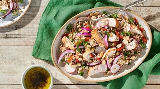 Farro Salad with Oven Roasted Chicken Breast Strips